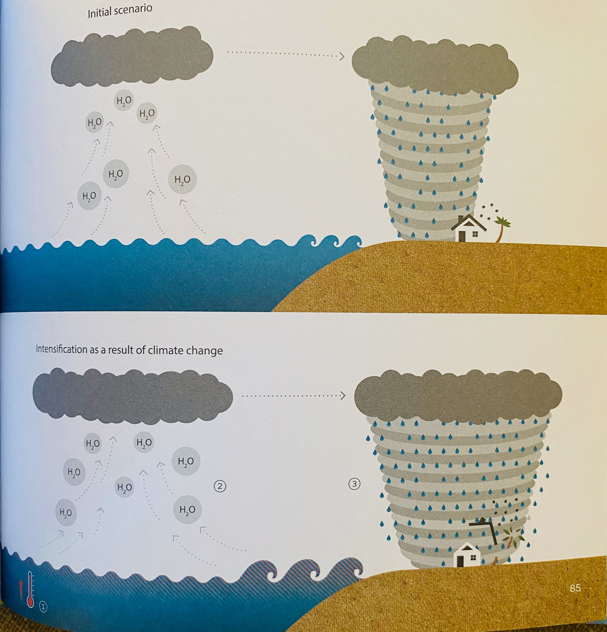 Climate change is causing the temperature of the sea surface to rise, and consequently, evaporation and humidity increase, thus feeding more energy to the storms. It increases the chance of more storms occurring.