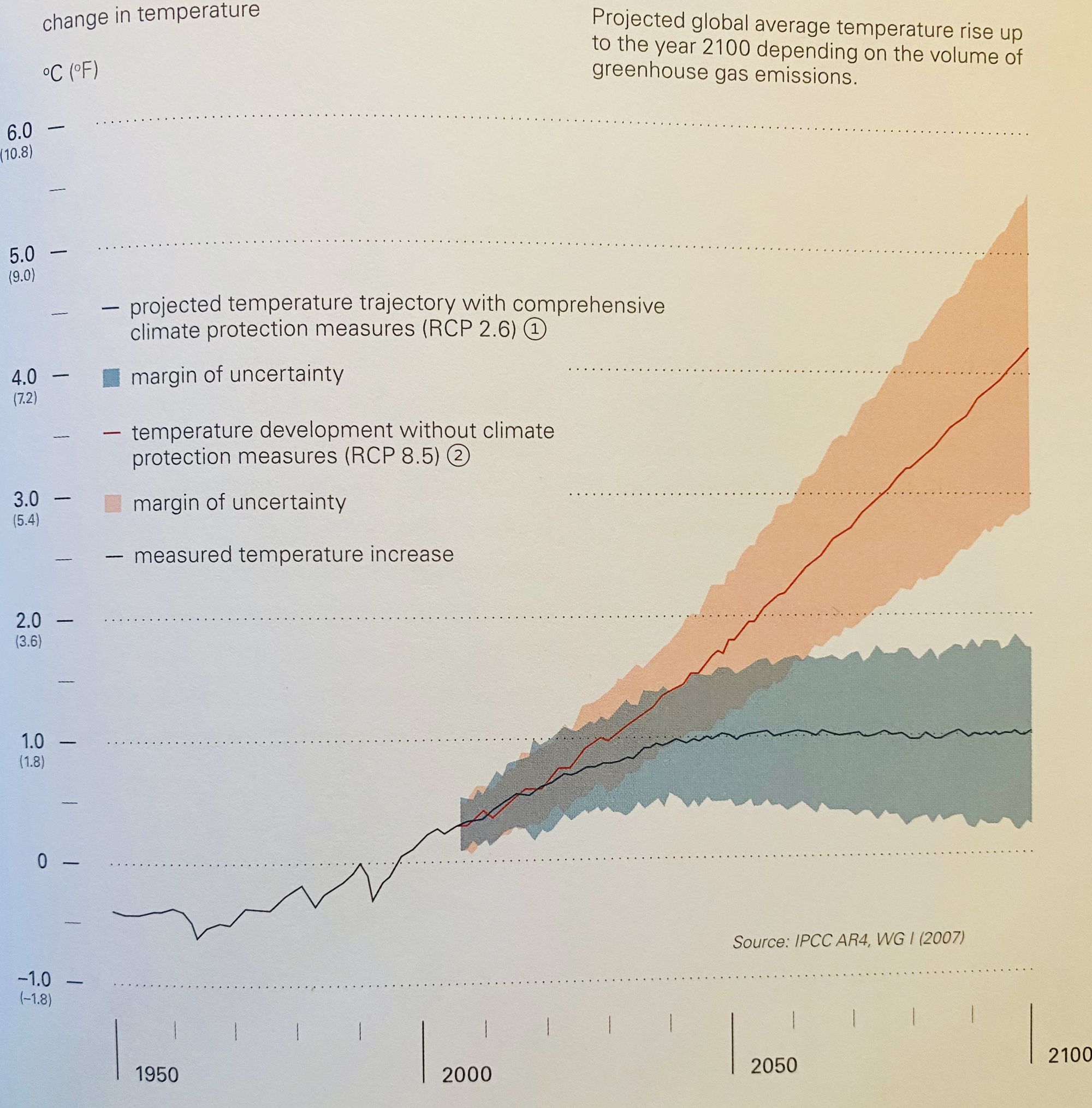 Since the end of the 19th century, we have observed a rise in the average global temperature by more than 1°C (1.8°F). This rise is observed to date, which we call "global warming."